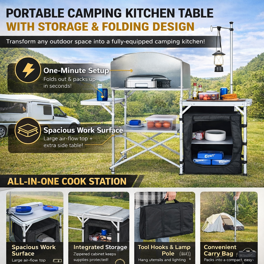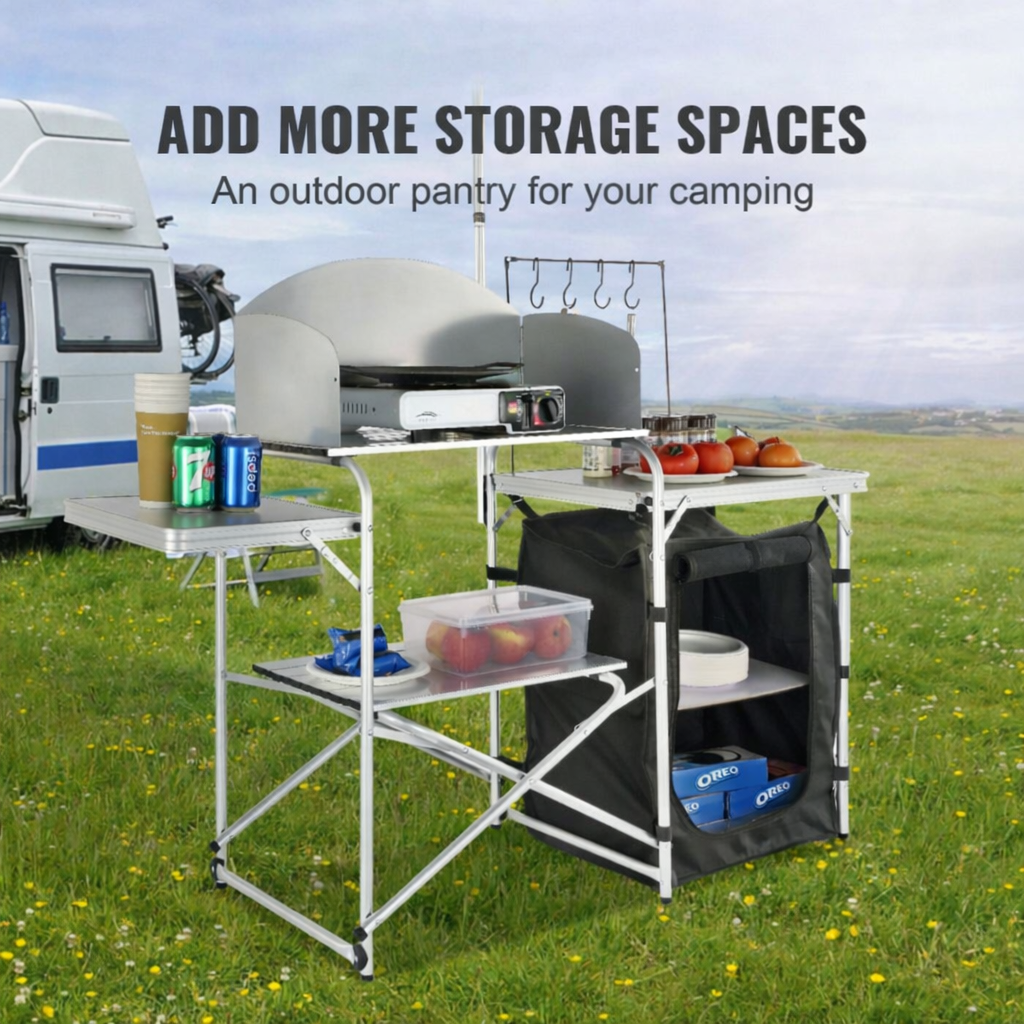 Transform any outdoor space into a fully-equipped kitchen. Perfect for camping, RV adventures, tailgating, and backyard BBQs.