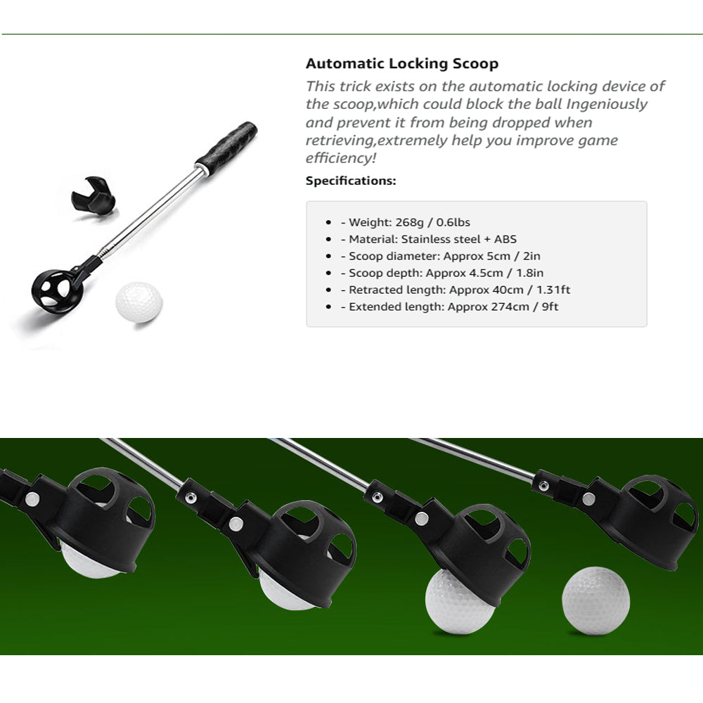 Stainless Telescopic Golf Ball Retriever for Water with Golf Ball Grabber for Putter