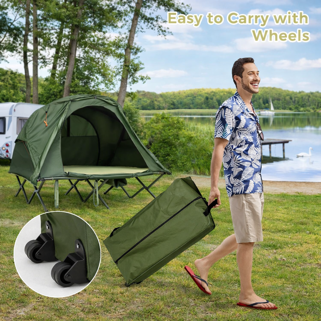 Tent, Cot, Self-Inflating Mat, Cover, Stakes, Roller Bag