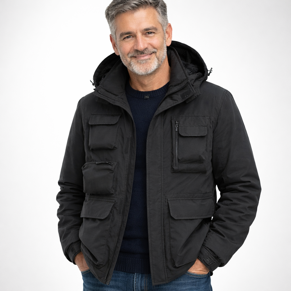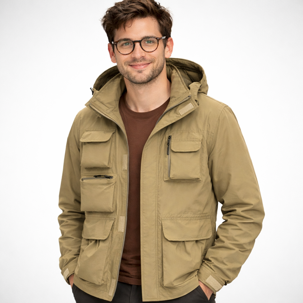 Men's Outdoor Shell Jacket | Multi-Pocket Hooded Overalls Coat
